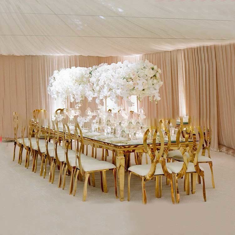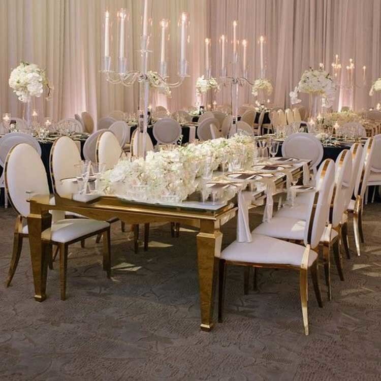 Mesa de jantar de aço inoxidável dourada do evento do hotel da tabela do casamento