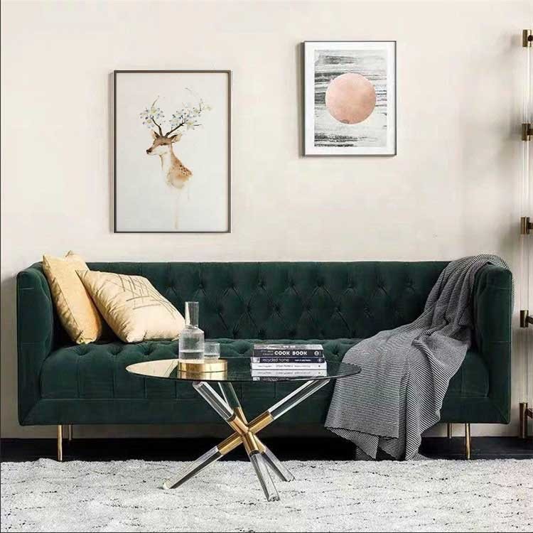 Entrada verde luxuosa Sofa Pull Clasp Sofa do hotel do coxim da tela de veludo