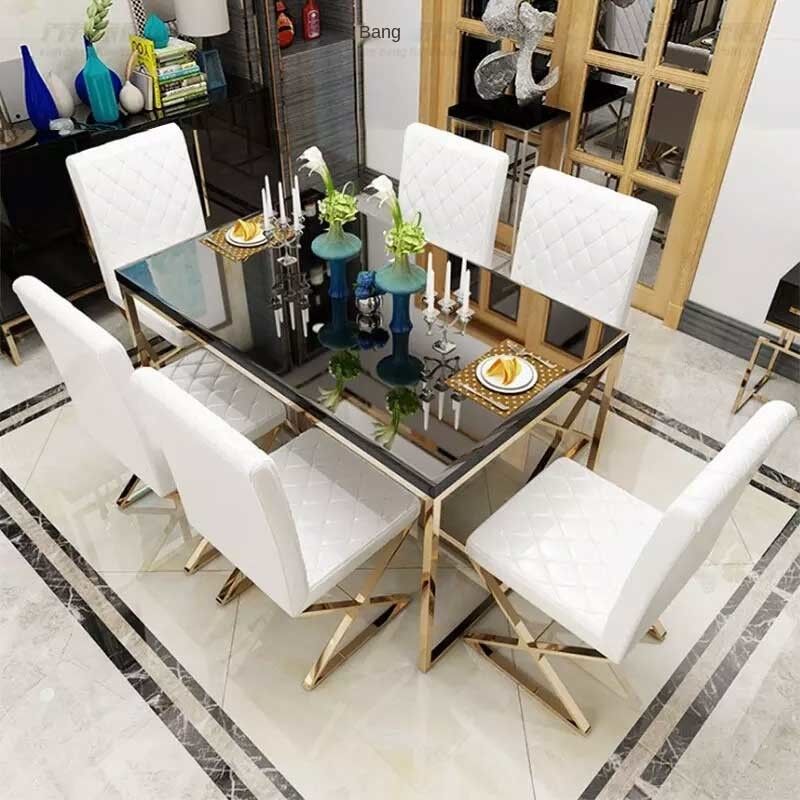 A tabela e a cadeira superiores da sala de jantar ajustaram o tipo de vidro moderado da beleza