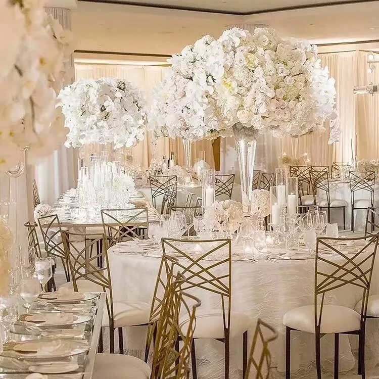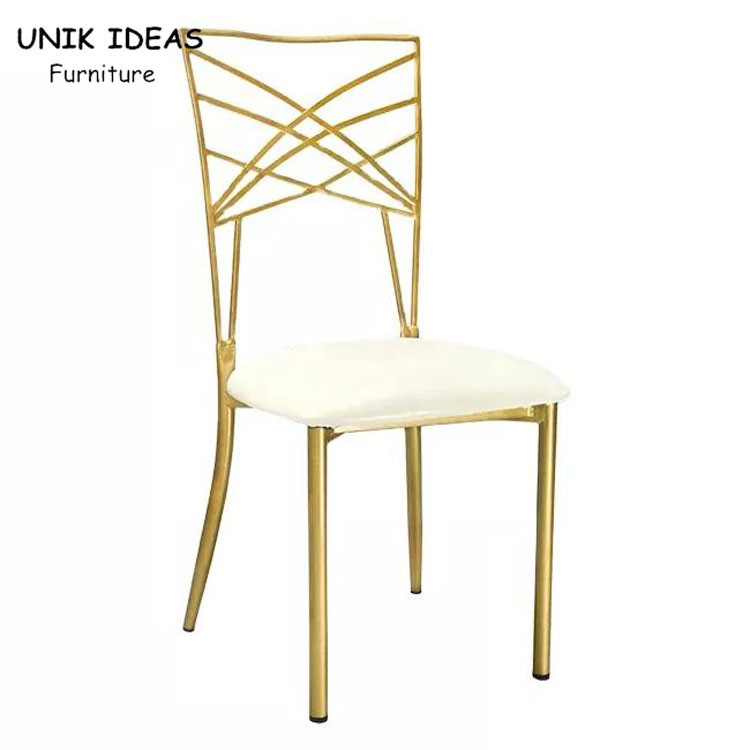 Cadeira traseira do casamento do banquete do camaleão do ouro da cruz luxuosa empilhável do metal